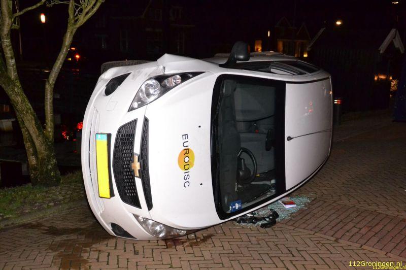 Donderdagavond is een auto na een ongeval met een Taxi en een Kunststof paaltje op