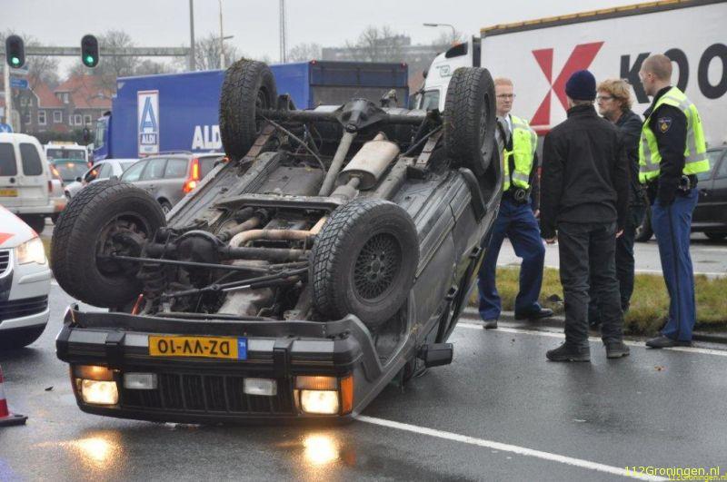 Dinsdagmiddag om 14:15 uur lag er alweer een auto op de kop op de ringweg