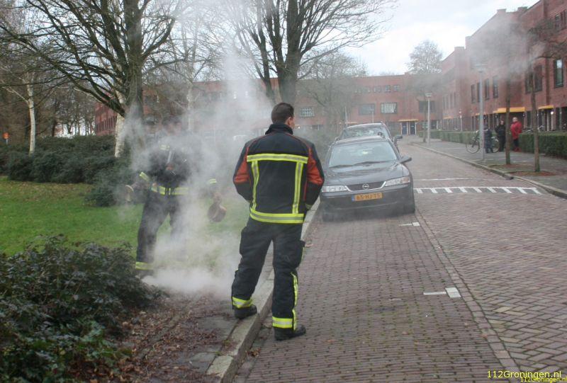 Een stuk vuurwerk heeft woensdagavond (tweede kerstdag) een geparkeerde auto aan de Klompestraat in Hoogezand