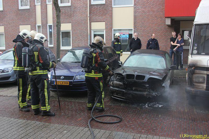 De stad-Groninger brandweer heeft zaterdagmiddag door snelle inzet een camper gered van een vlammenzee aan