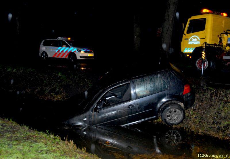Door nog onbekende oorzaak is zaterdagavond een automobilist met zijn auto in een sloot beland.