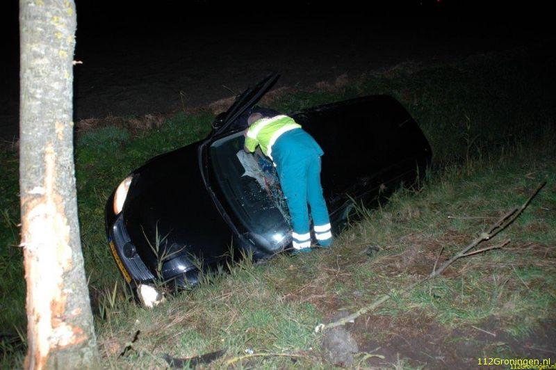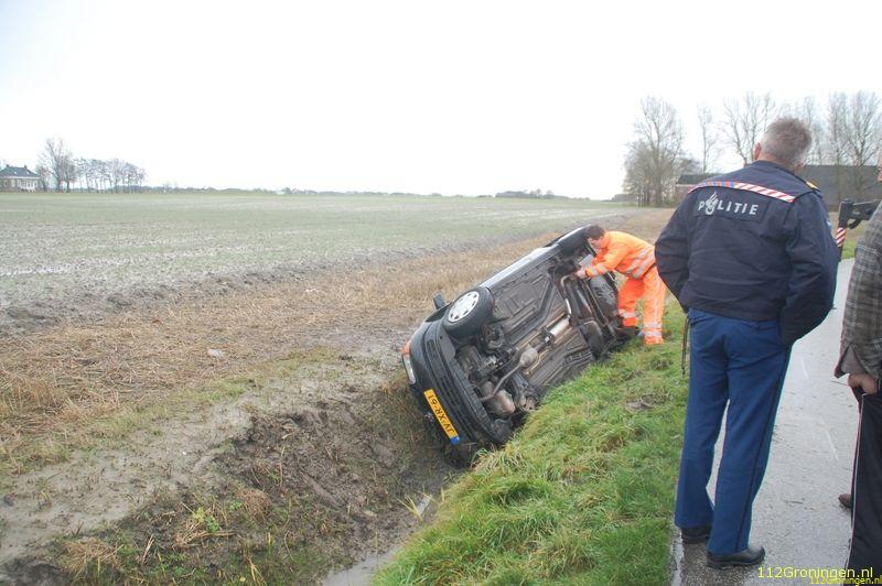Auto komt in droge sloot nabij Leens