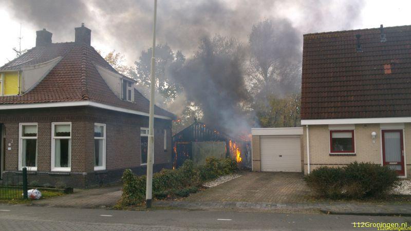 Een felle uitslaande brand heeft donderdag aan het eind van de morgen een houten garage