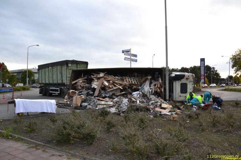 Donderdagavond om iets voor half zes kantelde op de rotonde Buinerweg / Julianastraat in Stadskanaal