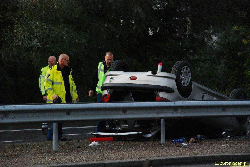 Om 14:20 uur kwam er een melding binnen van een voertuig gekanteld.