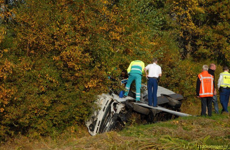 Vrachtwagen kantelt bij Stadskanaal (Video)