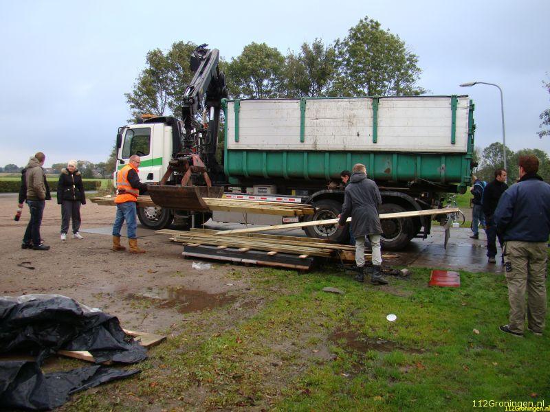Brandweer Middelstum breekt losgeraakte afdeksteiger af