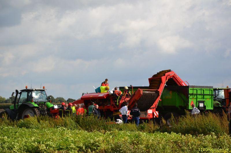 Donderdagmiddag raakte een 28 jarige man uit Veelerveen met zijn been in een aardappelrooimachine. De
