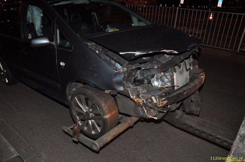 Woensdag avond zweefde een auto boven op een paaltje aan de Klaas Woltjerweg in Zuidbroek.