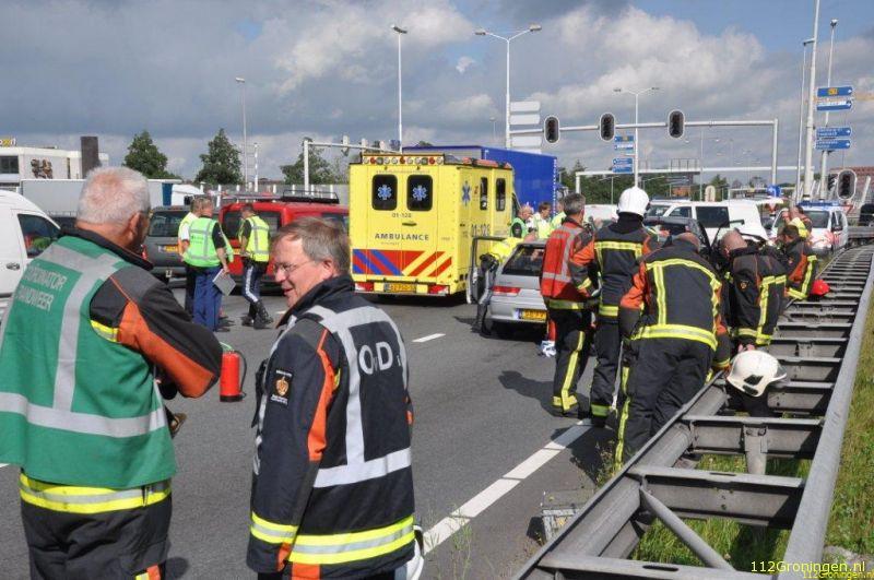 Bij een verkeersongeval op de A28 bij Groningen, zijn woensdagmorgen twee automobilisten gewond geraakt.
