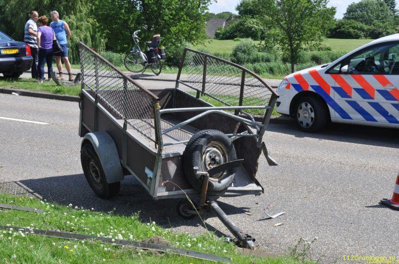 Bij een ongeluk op het Zeel in Delfzijl is zaterdagmiddag een aanhanger achter een auto