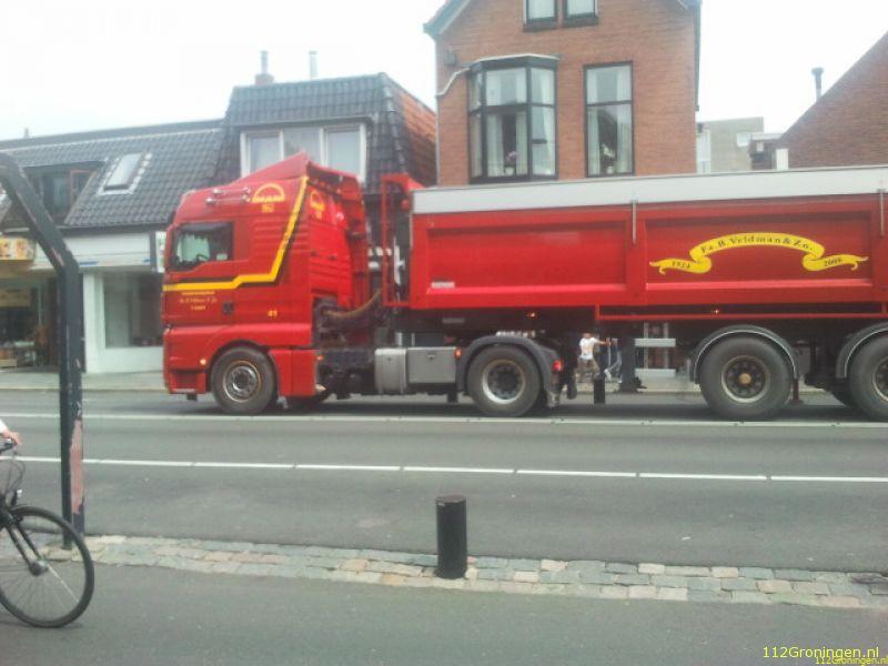 Gekantelde vrachtwagen zorgt voor stremming N33 Veendam (Video)
