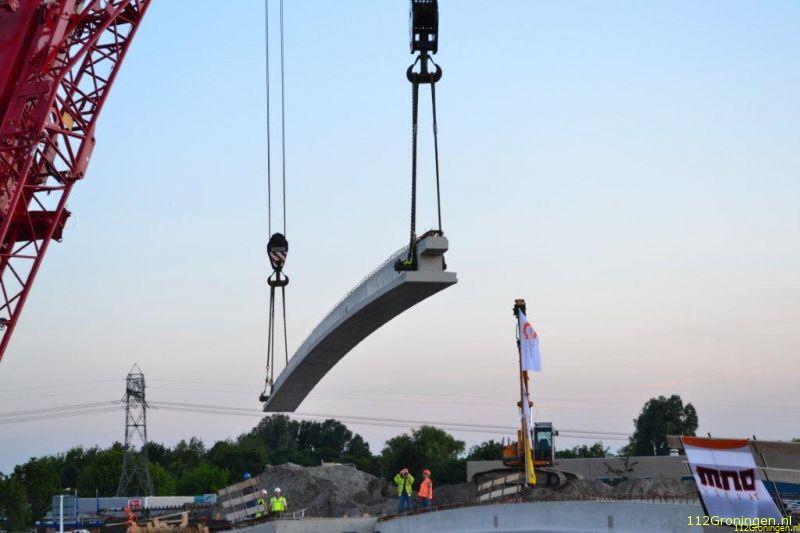 Veel belangstellenden hebben maandagavond gekeken naar een hijsklus bij de Oostelijke Ringweg .