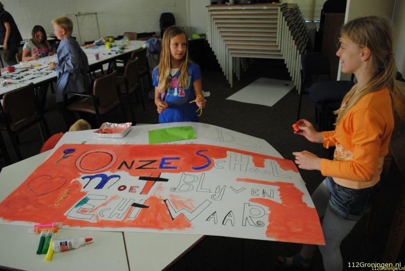 Actievoerende ouders en leeringen van de christelijke basisschool Visvliet Pieterzijl uit Visvliet hebben woensdagmiddag intrek