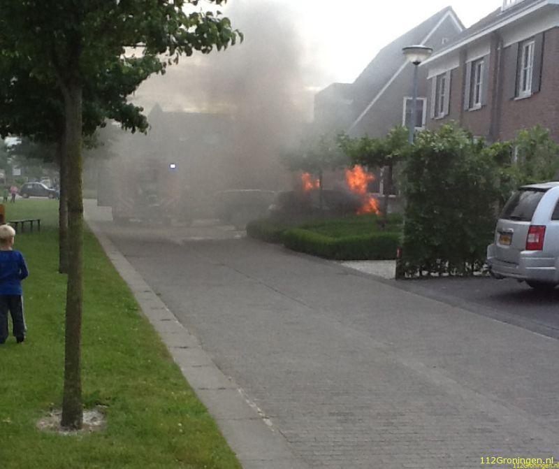 Een felle brand heeft donderdagavond een personenauto volledig verwoest aan de Wildervanksterdallen (Gemeente Veendam)