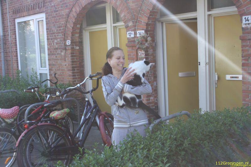 Donderdagochtend rond half 9 werd de brandweer van Groningen opgeroepen voor een dier op hoogte