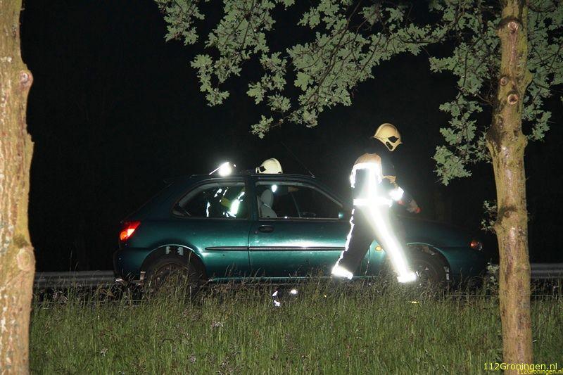 Een 23-jarige automobilist uit Bedum kwam woensdagnacht met de schrik vrij bij een eenzijdig verkeersongeval