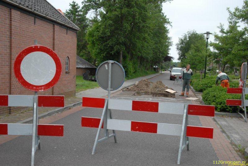 De Hoofdweg in Boerakker is momenteel gestremd door een kapot riool.