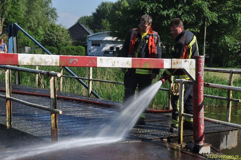 Het brandweerkorps van Appingedam moest zondagmiddag in actie komen om de Eekwerderdraai - brug bij