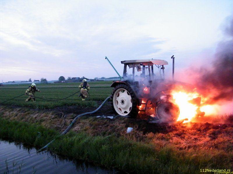 Een trekker is maandagavond rond 21.30 uur volledig uitgebrand in een bloembollenland aan de Oosterwijzend