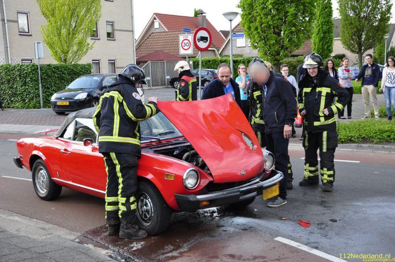 Het motorcompartiment van een oldtimer is aan het begin van de avond zwaar beschadigd geraakt