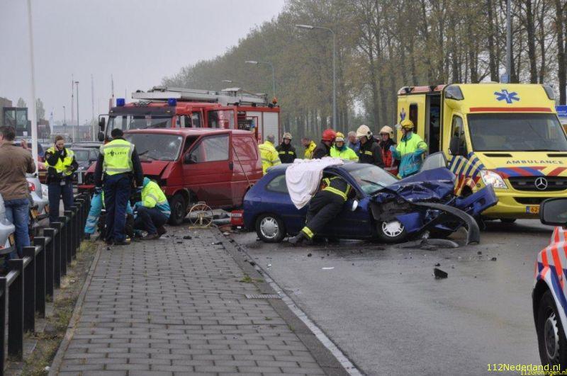 Bij een verkeersongeval aan de Schuttevaerweg in Rotterdam zijn zaterdagmiddag drie mannen gewond geraakt.