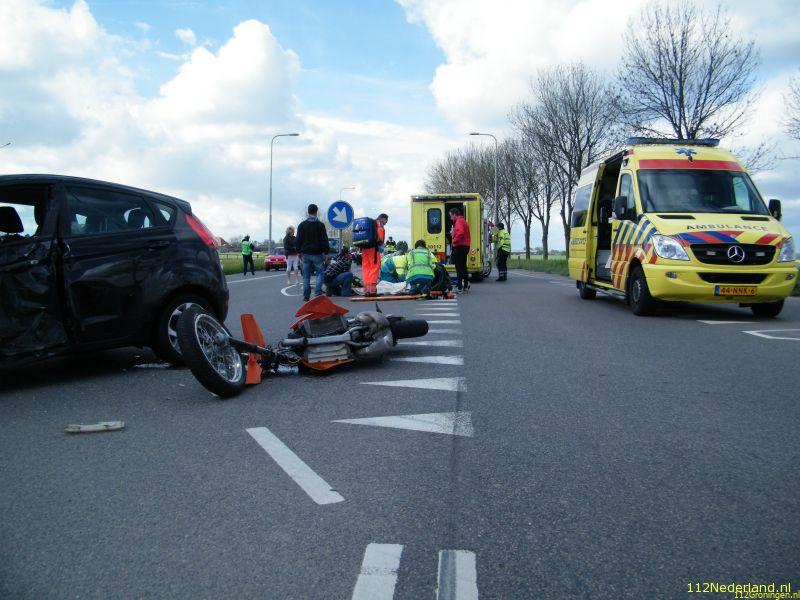 Een motorrijder is zaterdagochtend rond 10.00 uur zwaar gewond bij een aanrijding met een auto