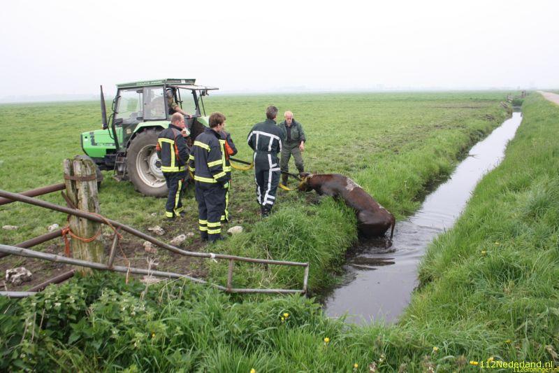 Koe in sloot bij Onnen