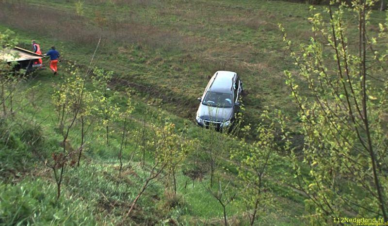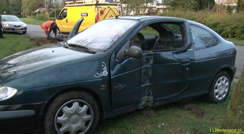 Op de N367 bij Oude Pekela belandde zaterdagavond een auto op de zijkant in de