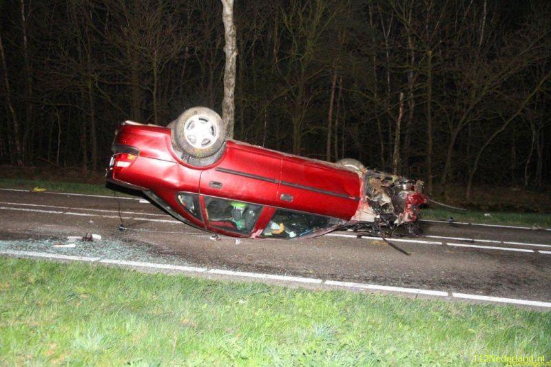 Aan de Rijksweg bij Reek is maandagnacht een auto op zijn kop geraakt nadat hij