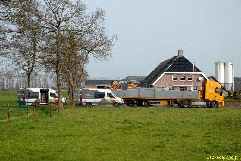 Aan de Lageweg in Marum heeft vanmorgen een vrachtwagen bij het achteruitrijden naar een boerderij