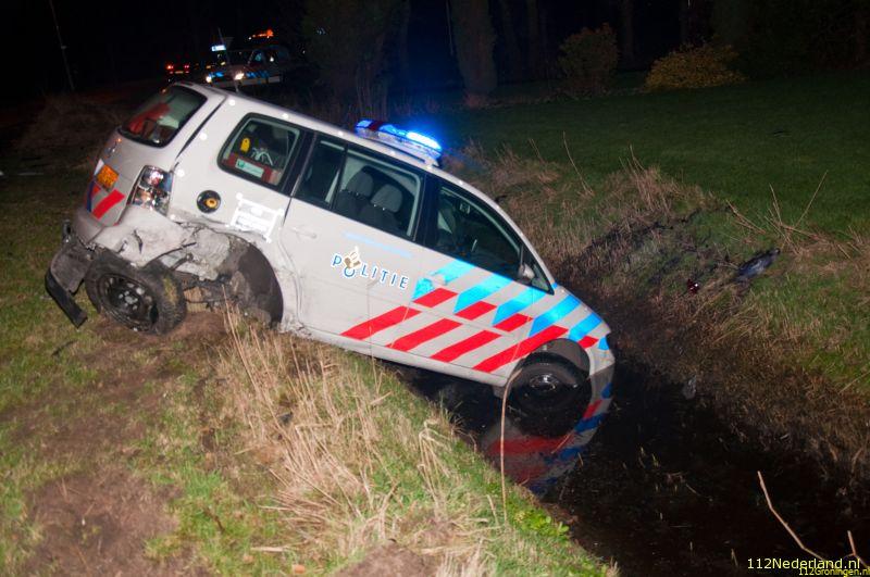 Aan de Ruinerdijk in Ruinen verloor maandagochtend een bestuurster in een flauwe bocht de controle