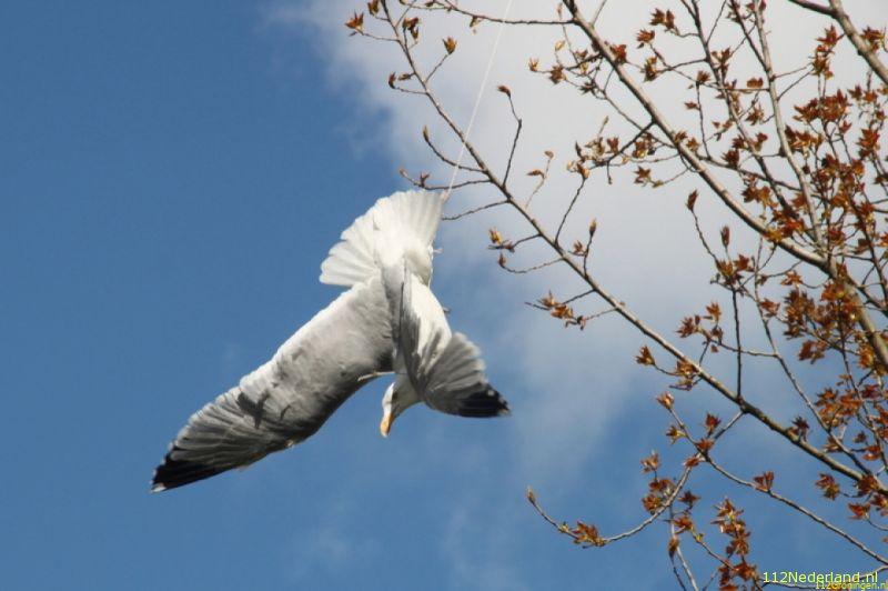 De brandweer heeft maandag aan het begin van de middag een meeuw uit een boom