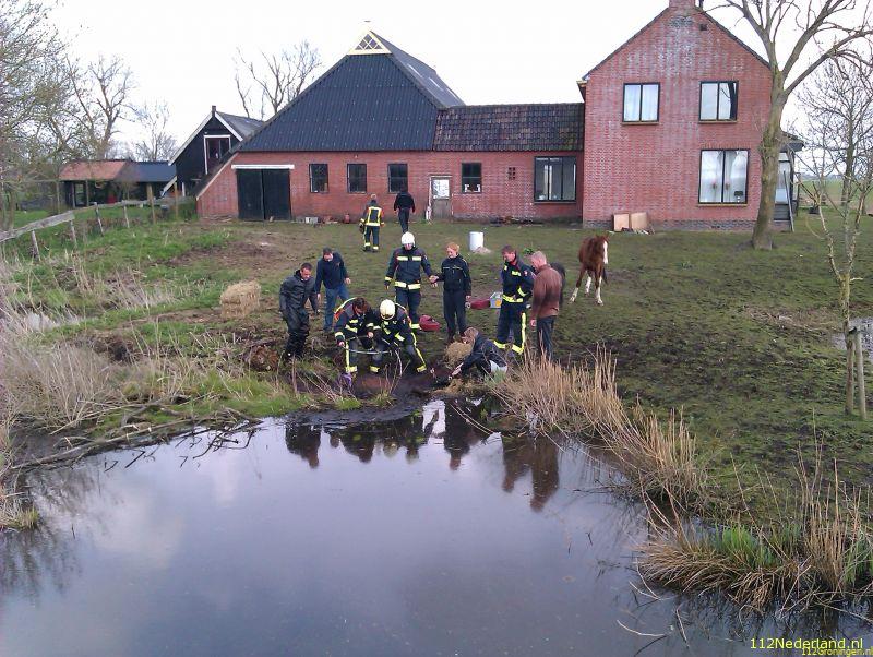 De brandweer kreeg donderdagmiddag rond 16:00 uur de melding van een paard in de sloot.