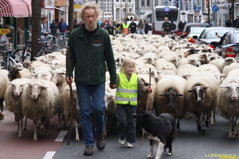 De schaapskudde(350 stuks) heeft de stadsgrens bereikt na 10 dagen lopen. Dwars door Haren liepen