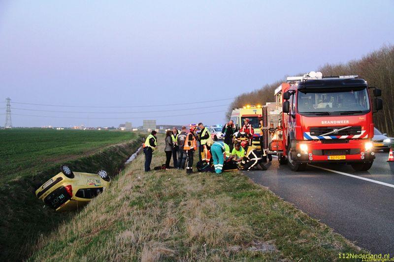 Automobiliste(36) met auto op de kop in de sloot A7 (Video)