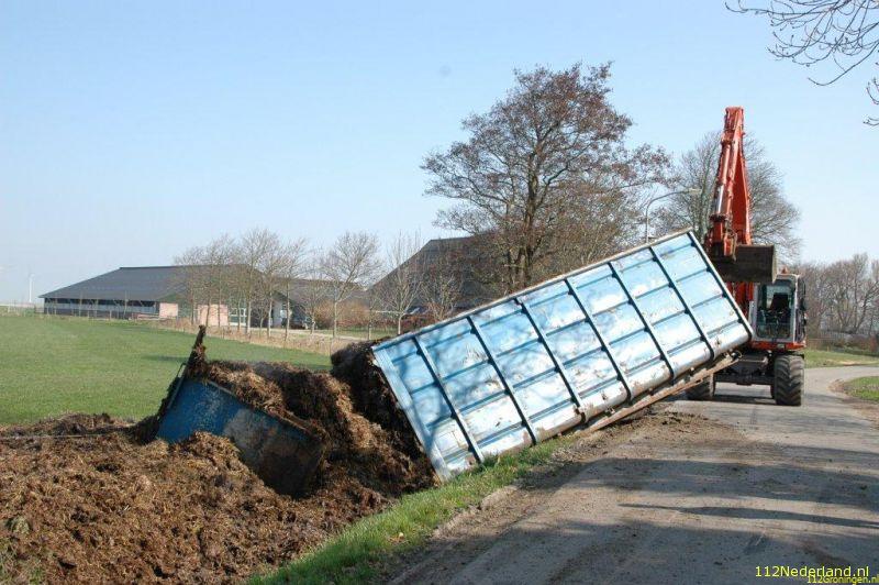Donderdag is omstreeks het middaguur een vrachtwagen gekanteld op de Stadsweg in Lauwerzijl. Niemand raakte
