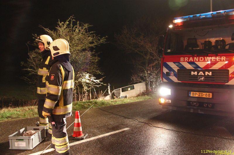Zaterdagochtend is de bestuurder van een bestelbus zwaar gewond geraakt nadat hij met zijn auto