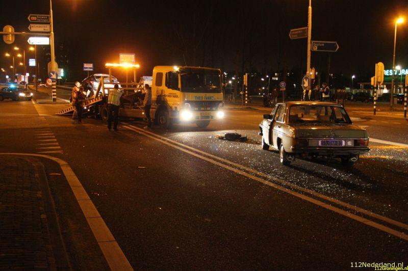 Zaterdagavond botste de bestuurder van een oude Mercedes voor de stoplichten bij Mcdonalds Goutum achterop