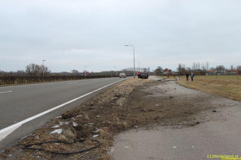 Zondagochtend heeft een bestuurster van een auto een grote ravage aangericht op de Bredyk nabij