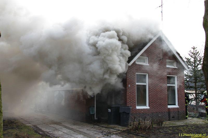 Een felle brand heeft zaterdagmiddag voor grote schade gezorgt in een vrijstaande woning aan de