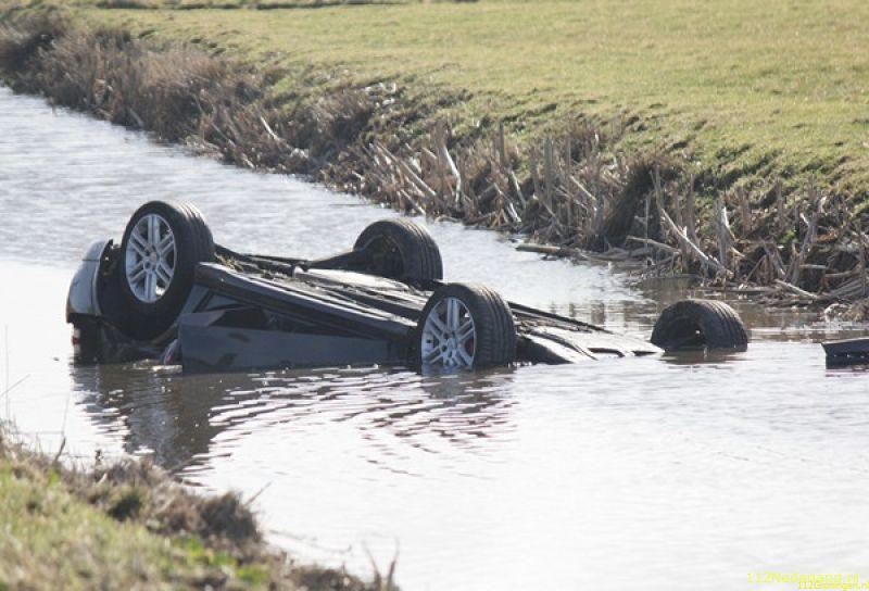 Spelers SC Veendam verlenen eerste hulp bij auto te water