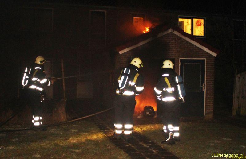 Een schuurtje achter een woning heeft vrijdagavond aan de Johannes Poststroom in Hoogeveen vlam gevat.