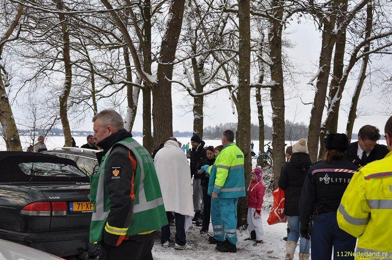 Een schaatser die door het ijs zakt, op het Paterswoldsemeer. Gistermiddag rond 4 uur stond