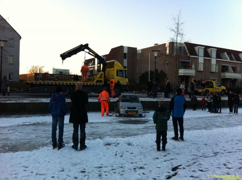 Vrijdagmiddag is een vrouw met haar auto op het ijs beland nadat ze vanaf de