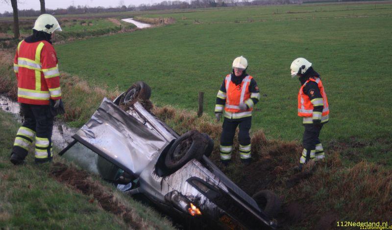 Een 28-jarige automobiliste uit Groningen is er goed vanaf gekomen nadat zij zaterdagmiddag betrokken was