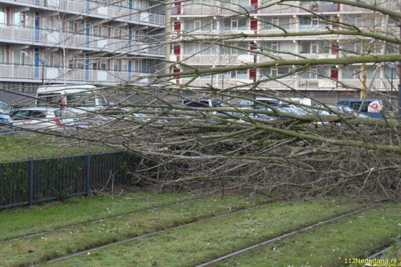 Door de harde wind is donderdagochtend een boom op de tramleiding gevallen. Dit gebeurde op