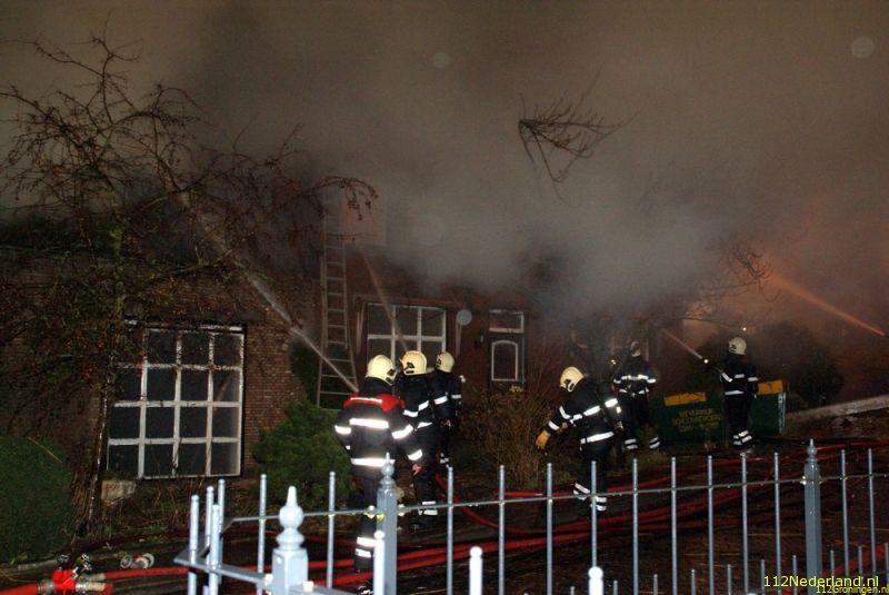 Aan de Burgstraat in Giessen heeft een brand gewoed in een oude boerderij. De brand