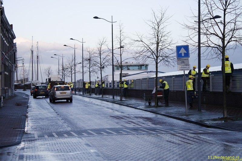 De Hoogwaterbrigade is op dit moment bezig om op verschillende plekken langs de IJsselkade bij