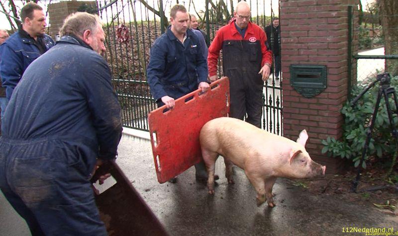 Een vrachtwagen met varkens is op Engbersweg in het Overijsselse Ane (bij Gramsbergen) gekanteld.